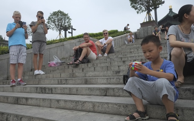 双腿勾在倒挂架的横杆上整个人倒吊着右手背在身后仅用左手飞速复原一个三阶魔方!7月12日厦门双十中学初三学生杨陈雨在中考前...