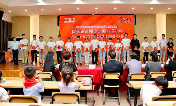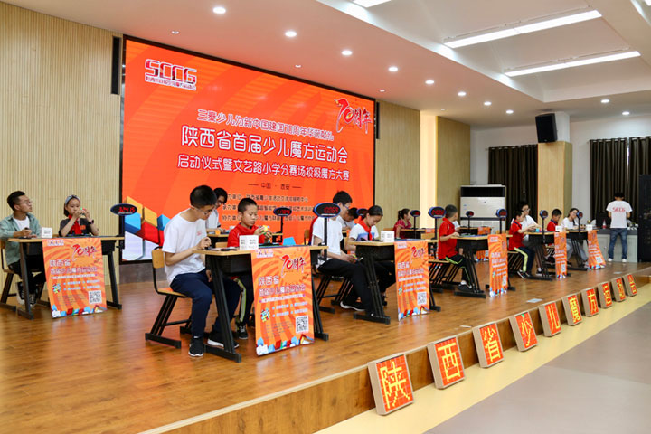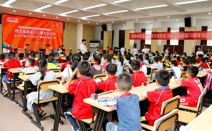 为展现新时代青少年自信、阳光的精神面貌,激发孩子们对益智魔方运动的热情,培养健康向上的兴趣爱好,为广大热爱魔方的少年儿童提供展现自我的平台,由陕西省青少年活动交流与服务中心、优贝童趣智能馆及西安皇城艺术培训中心联合主办的“陕西省首届少儿魔方运动会”,于2019年5月31日下午在西安文艺路小学正式拉开了帷幕。陕西省青少年活动交流与服务中心副主任马海亮先生、西安碑林区教育局团委书记周涛先生及校方领导等嘉宾出席启动仪式。